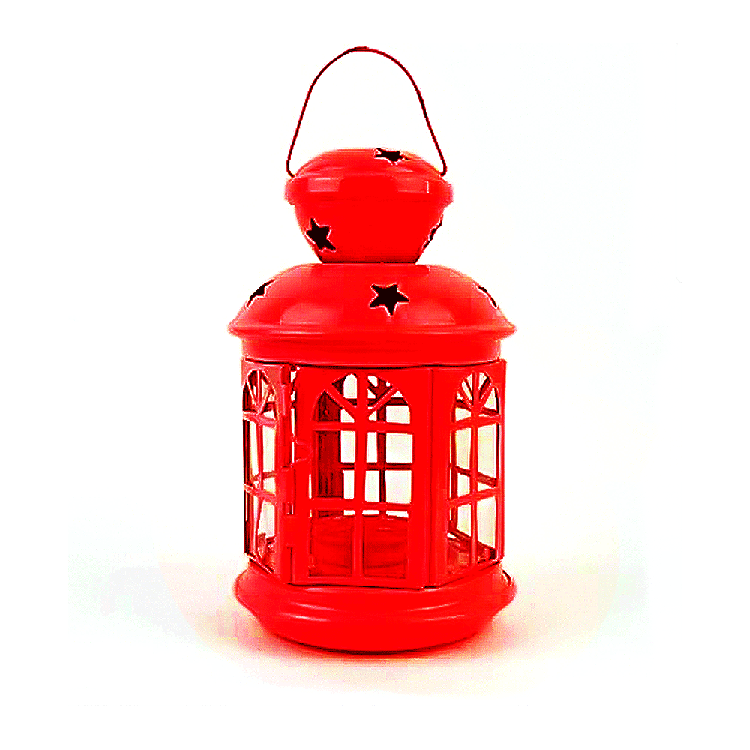 فانوس رمضان مضىْ مصنوع من المعدن باللون الاحمراضافه رائعه للمنزل او للمكتب لأعاده الأجواء الرمضانيه