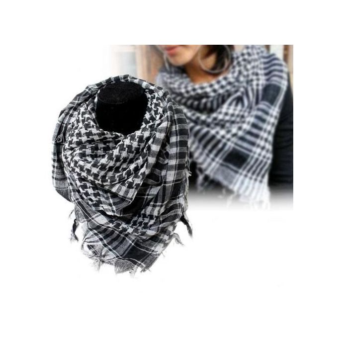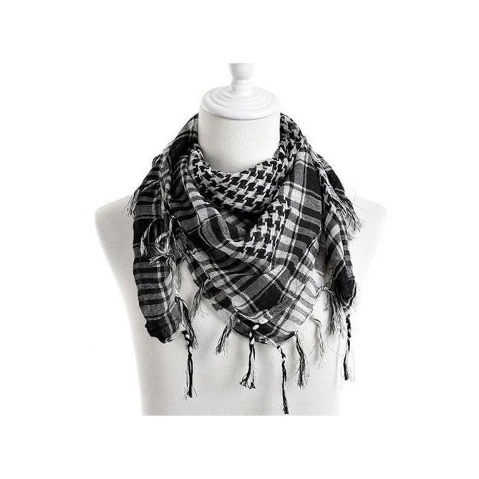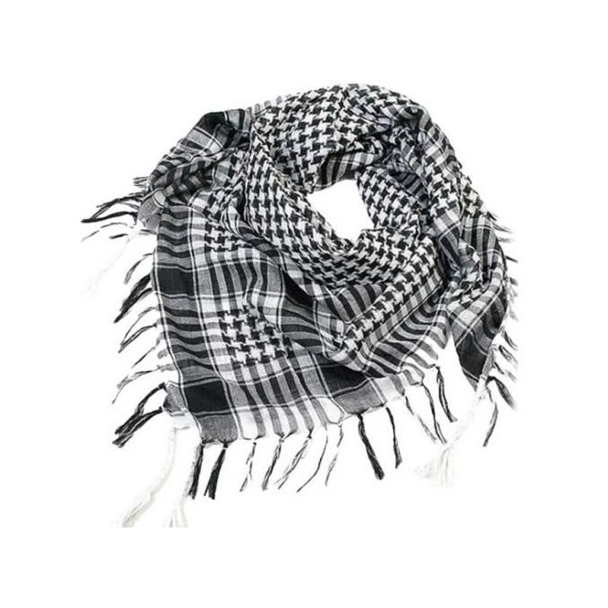 سكارف ووشاح عربي فلسطيني رجالي وحريمي يأتي باللون المختلط من اللون الأبيض والأسود مصنوع من ماده القطن مريح جداً ويعطي احساس بالدفئ والشياكه ومميز جداً للمظهر